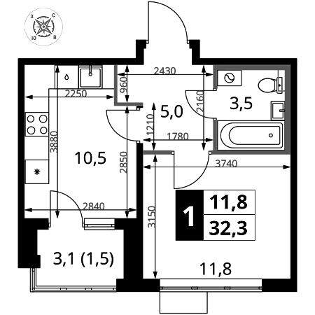Купить 1к квартиру 32 м² в ЖК 1‑й Шереметьевский