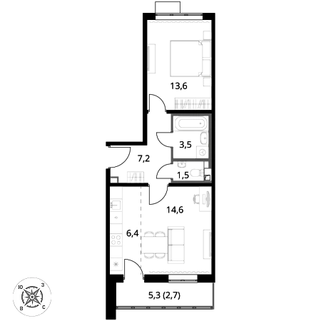 Купить 2к квартиру 49 м² в ЖК 1‑й Шереметьевский