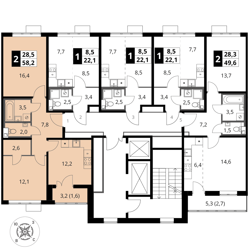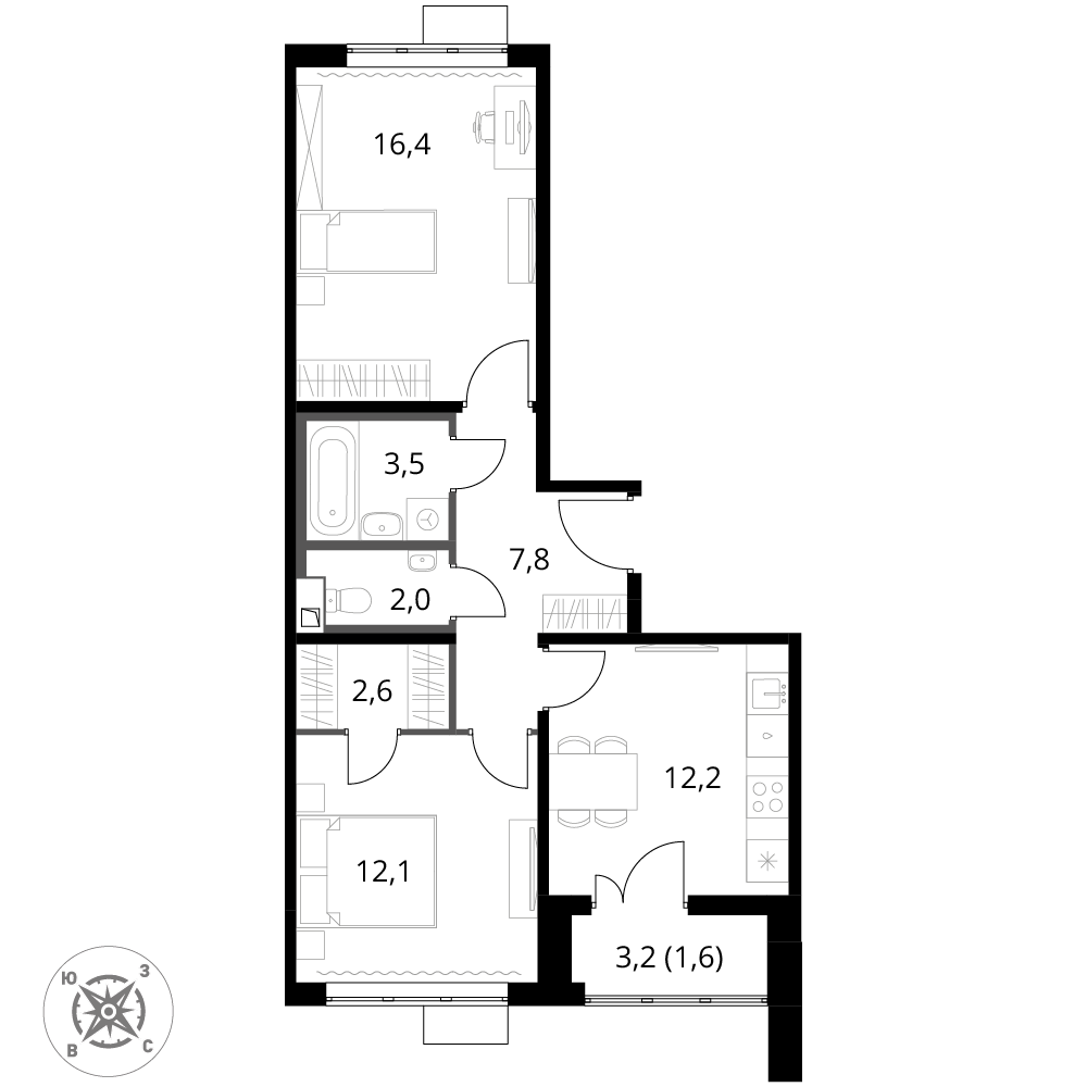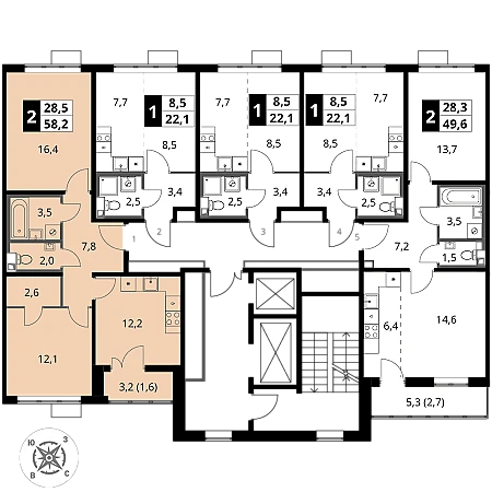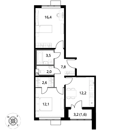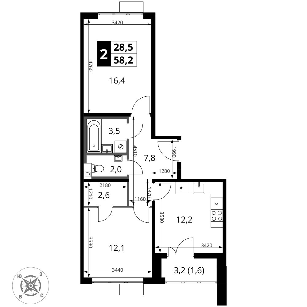 Купить 2к квартиру 58 м² в ЖК 1‑й Шереметьевский