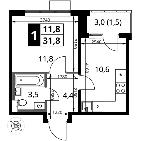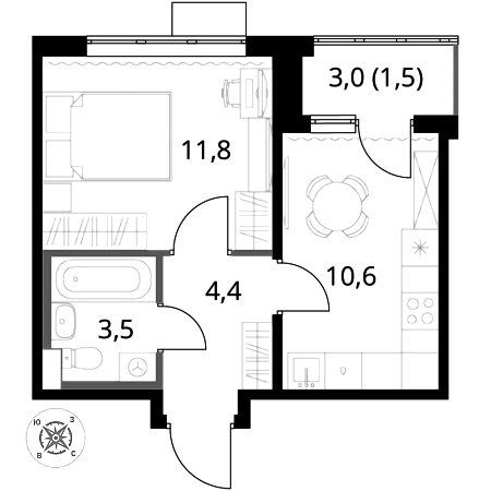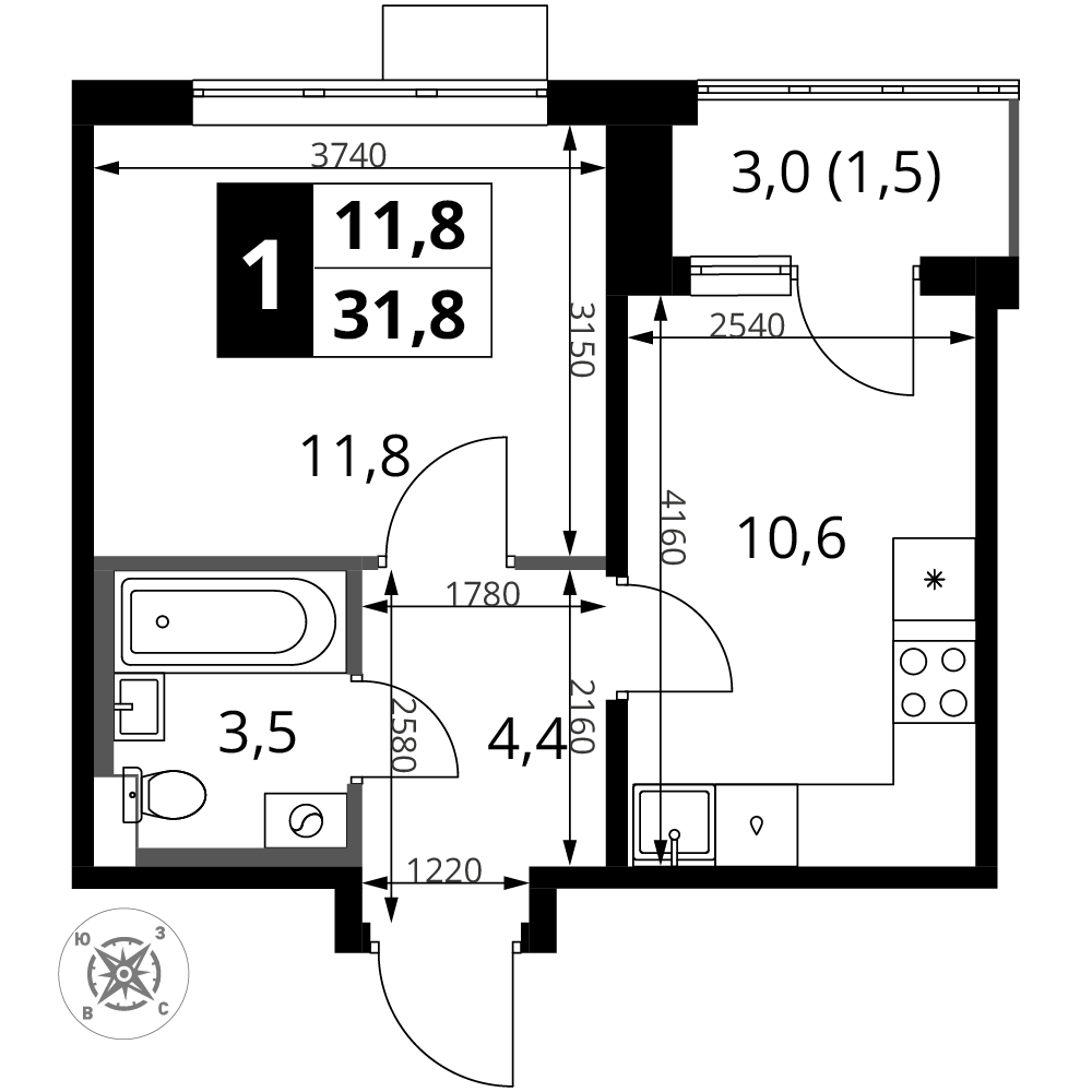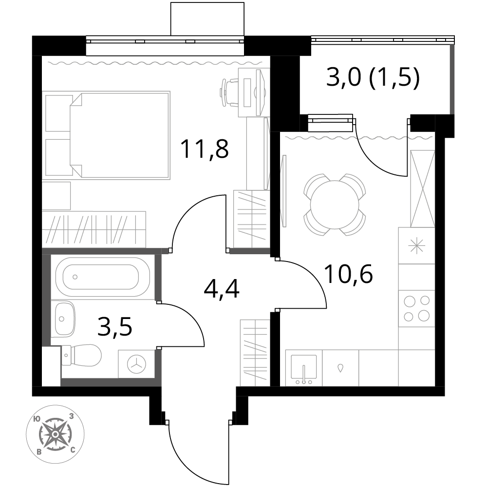 Купить 1к квартиру 31 м² в ЖК 1‑й Шереметьевский