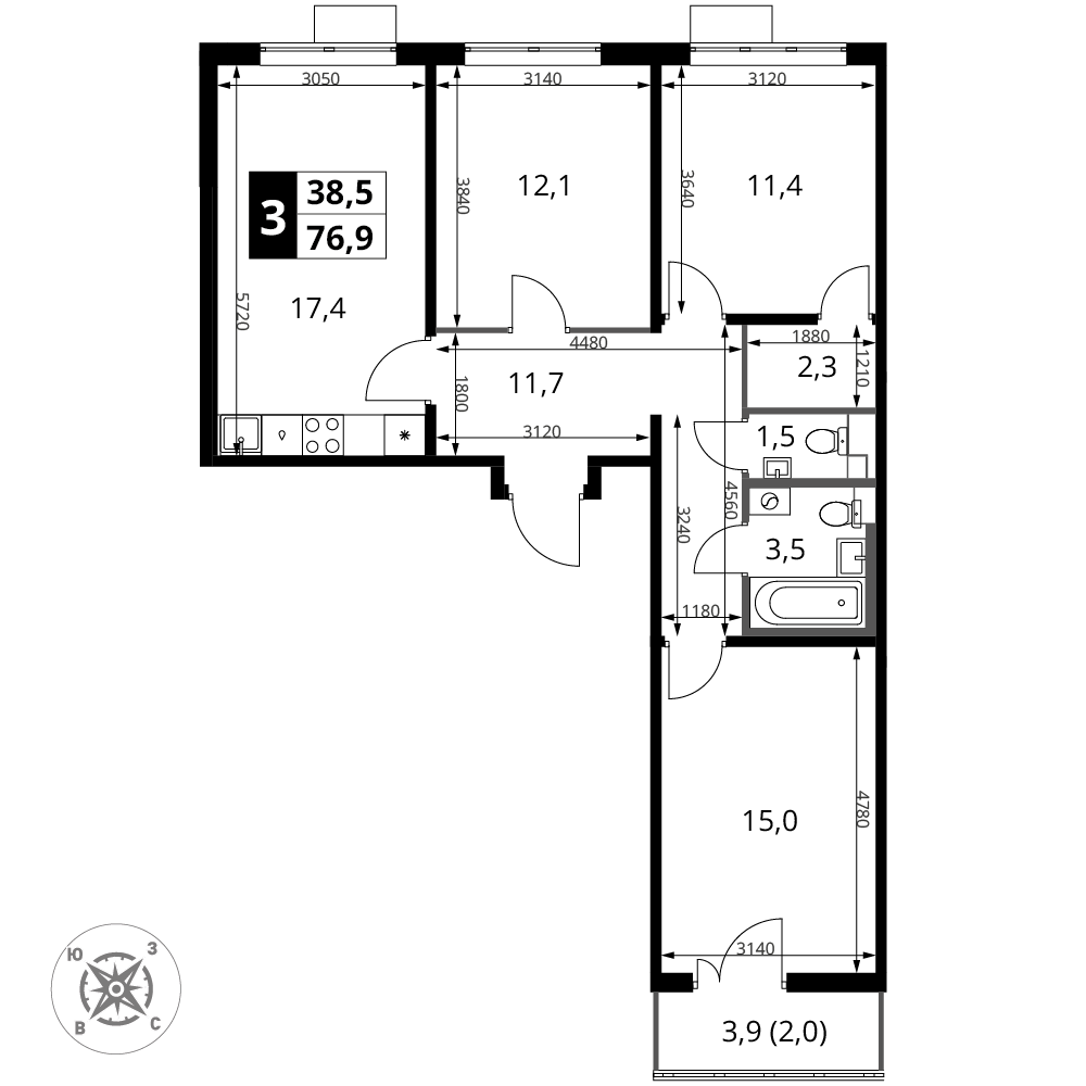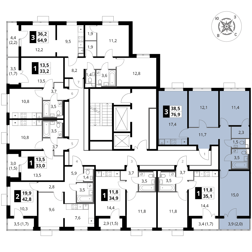 Продаётся 3-к квартира номер 1056 общей площадью 76.9 кв.м. на 16-м этаже 16 этажного здания. Отделка Whitebox. Цена с учётом скидки.