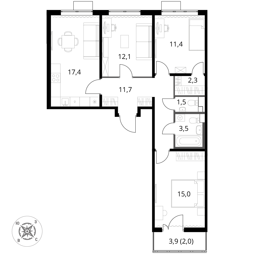 В ЖК 1-й Шереметьевский разнообразие площадей и планировок. Большие кухни-гостиные: в них два окна или больше. Во всех квартирах площадью от 40 кв.м. и выше спроектировано 2 санузла. Большие остекленные лоджии с отделкой.