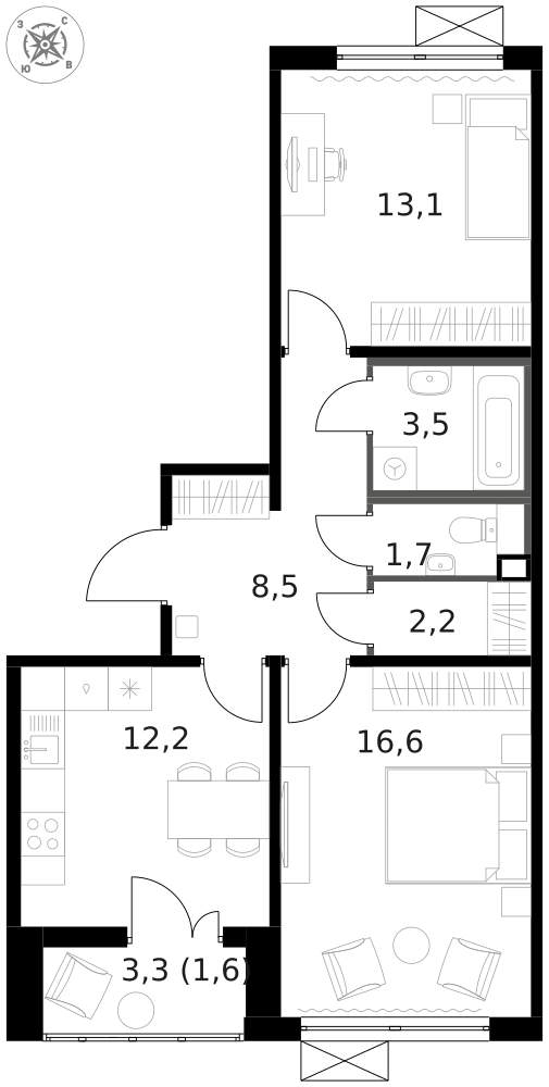 - Распашная планировка - отличное сочетание удобства и свободы.