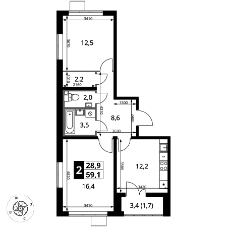 - Раздельный санузел - больше удобства для всех членов семьи.