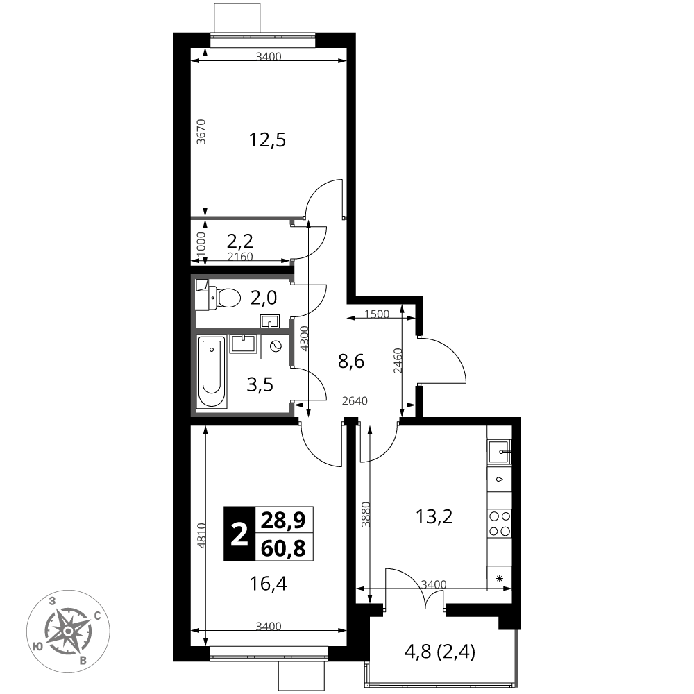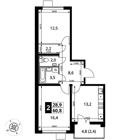 Продаётся 2-к квартира номер 374 общей площадью 60.8 кв.м. на 8-м этаже 25 этажного здания. Чистовая отделка. Цена с учётом скидки.