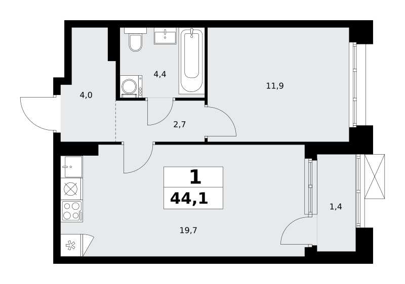 Одно из преимуществ проектов 1- ДСК большие застекленные лоджии. Другое преимущество честный евро-формат. Во всем проекте предусмотрена система Умный дом. В состав устанавливаемого пакета устройств входит: WiFi реле для управления группами потребителей, беспроводной кран перекрытия с эл. приводом, беспроводной сенсор протечки, Яндекс Станция Мини.