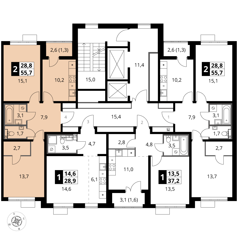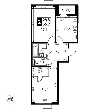 Продаётся 2-к квартира номер 473 общей площадью 55.7 кв.м. на 10-м этаже 24 этажного здания. Отделка Whitebox.