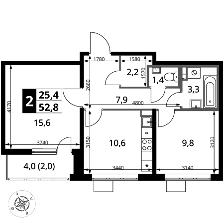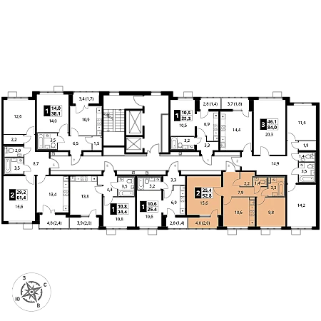 Купить 2к квартиру 52 м² в 1-й Южный