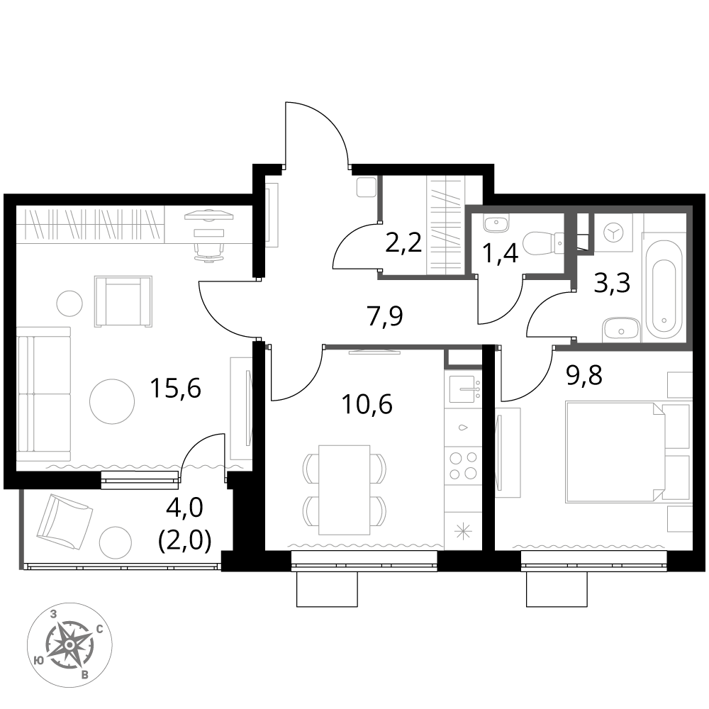 - Линейная планировка - максимальная функциональность и удобство.