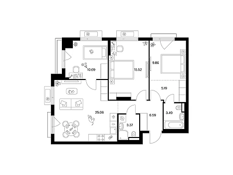 - Раздельный санузел - больше удобства для всех членов семьи.