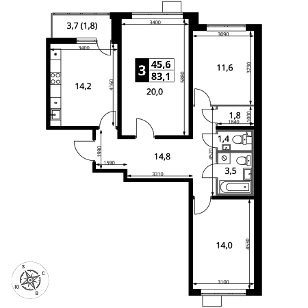 Продаётся 3-к квартира номер 345 общей площадью 83.2 кв.м. на 3-м этаже 24 этажного здания. Чистовая отделка. Цена с учётом скидки.