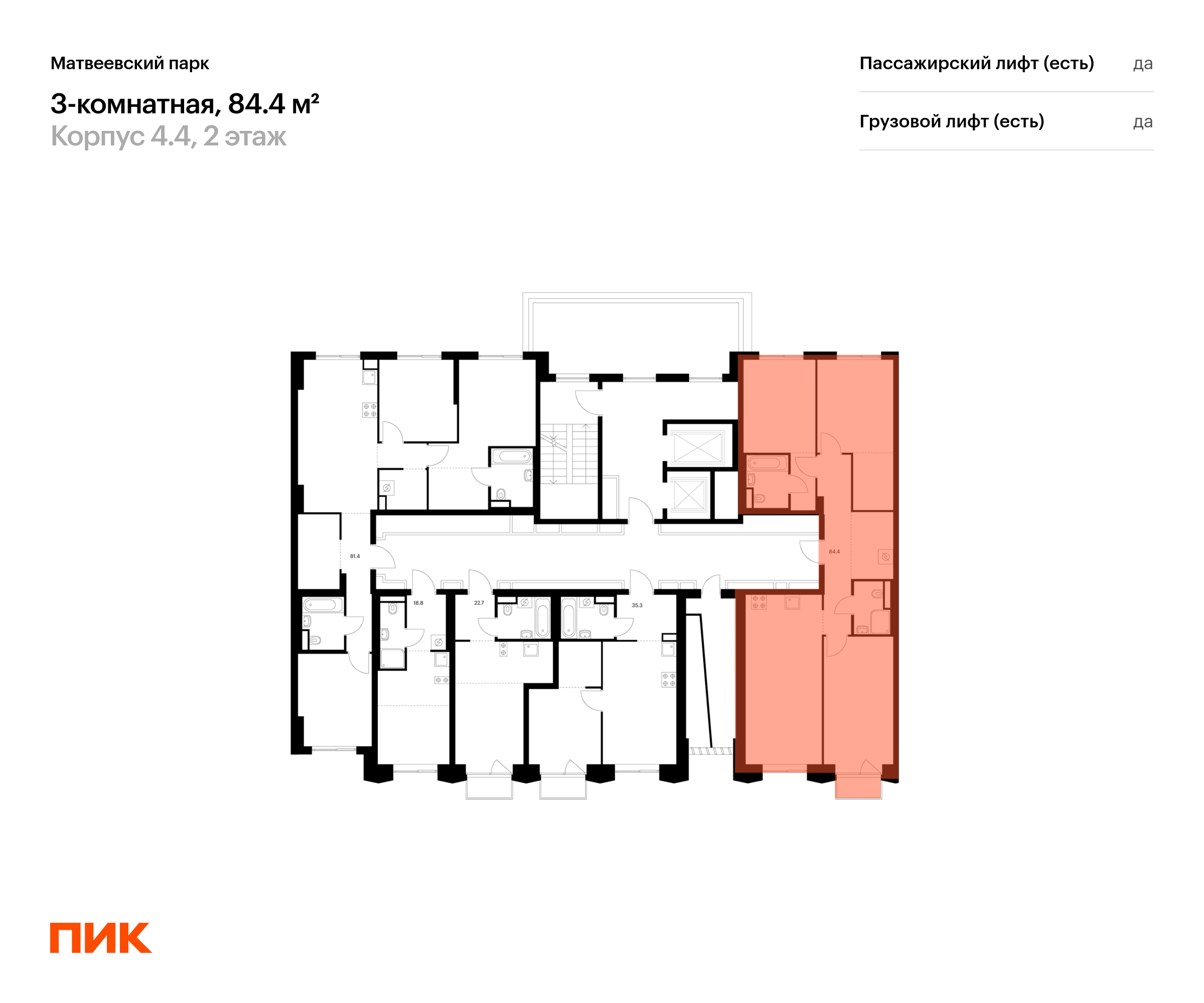 Продаётся 3-к квартира номер 9 общей площадью 82.9 кв.м. на 2-м этаже 46 этажного здания. Без отделки. Цена с учётом скидки.