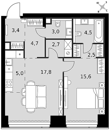 - Мастер-зона с санузлом и гардеробной. Всё для вашего комфорта и удобства, включая личный санузел и гардероб.