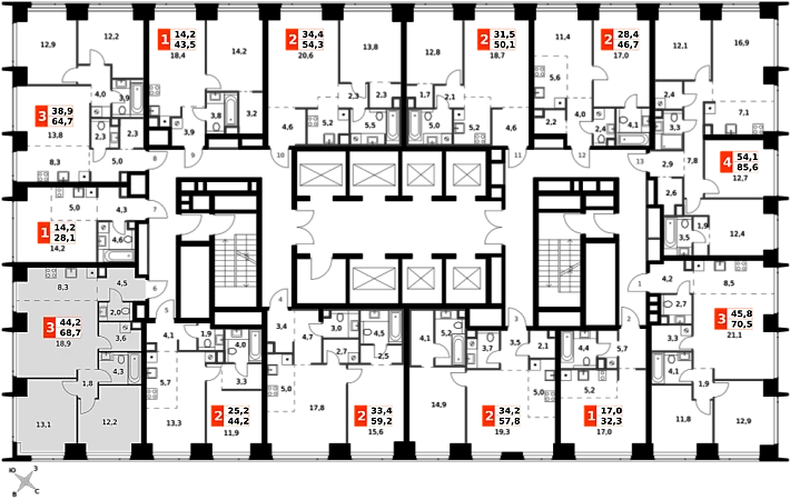 Продаётся 3-к квартира номер 642 общей площадью 68.7 кв.м. на 2-м этаже 57 этажного здания. Без отделки. Цена с учётом скидки.