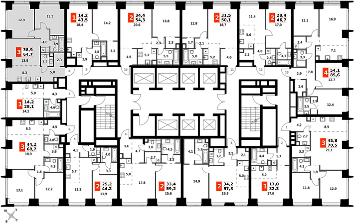 Продаётся 3-к квартира номер 644 общей площадью 64.7 кв.м. на 2-м этаже 57 этажного здания. Без отделки. Цена с учётом скидки.