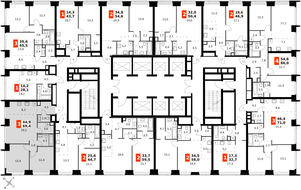 Продаётся 3-к квартира номер 707 общей площадью 69.4 кв.м. на 7-м этаже 57 этажного здания. Без отделки. Цена с учётом скидки.
