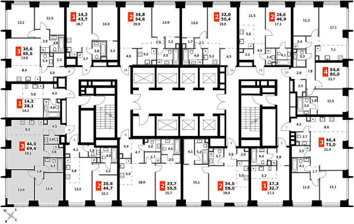 Продаётся 3-к квартира номер 733 общей площадью 69.4 кв.м. на 9-м этаже 57 этажного здания. Без отделки. Цена с учётом скидки.