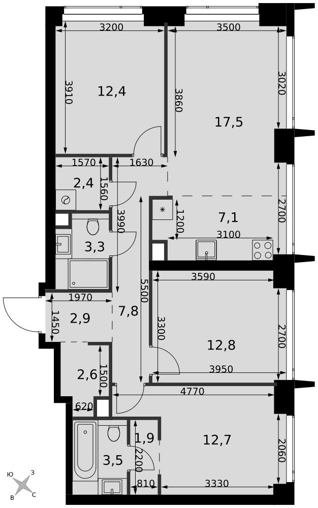- Мастер-зона с санузлом и гардеробной. Всё для вашего комфорта и удобства, включая личный санузел и гардероб.