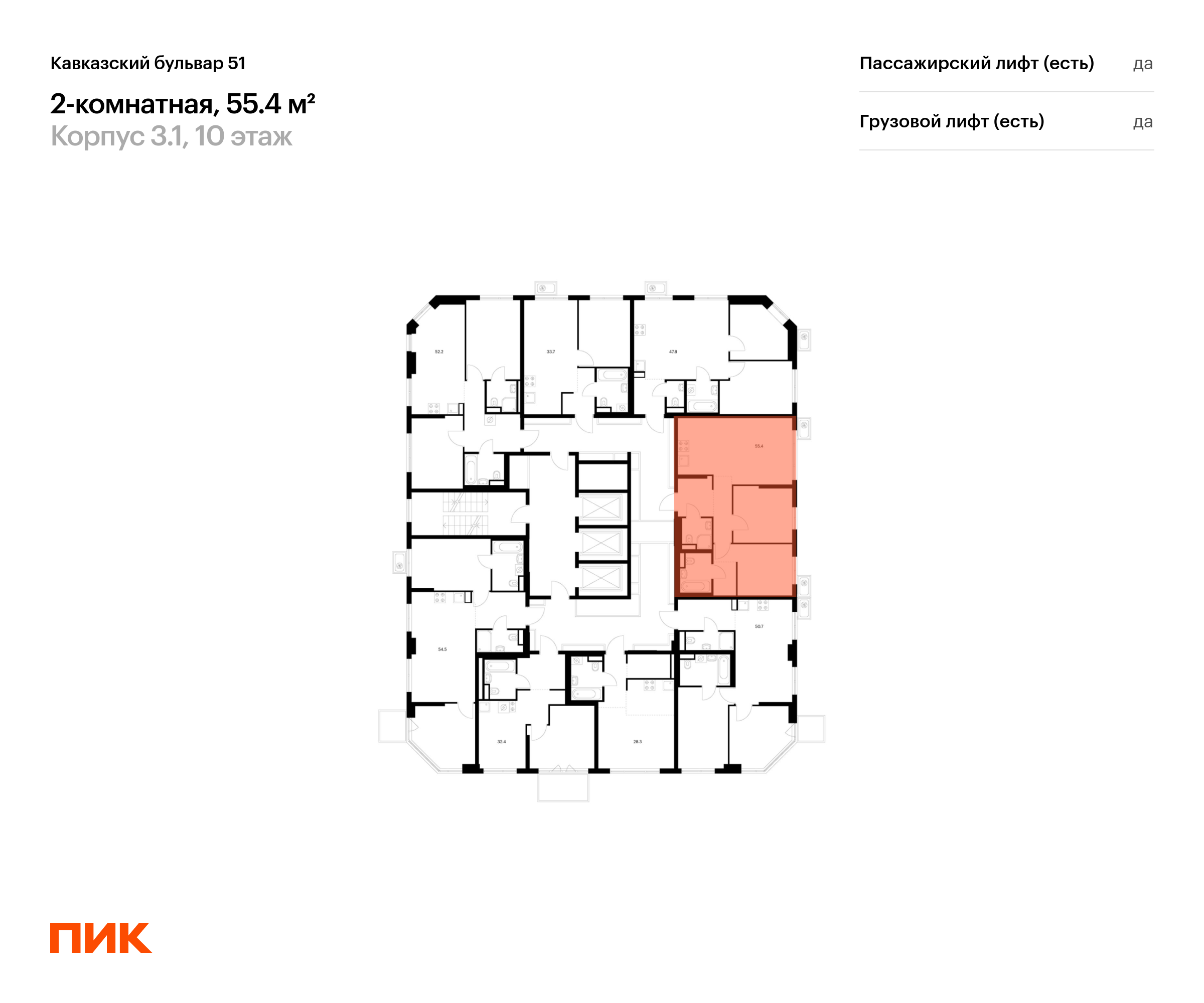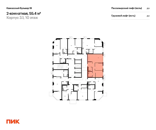 Продаётся 2-комн.квартира площадью 55.40 кв.м на 10 этаже 23 этажного дома (Корпус 3.1, секция 1) проекта ПИК Кавказский бульвар 51. Светлый просторный подъезд на уровне земли, функциональная планировка, большие окна, с отделкой.