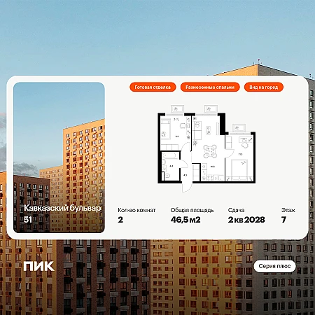 Купить 2к квартиру 46 м² в ЖК Кавказский бульвар 51
