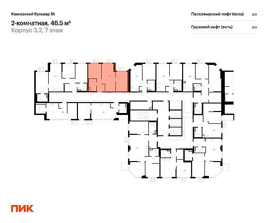 Продаётся 2-комн.квартира площадью 46.50 кв.м на 7 этаже 23 этажного дома (Корпус 3.2, секция 2) проекта ПИК Кавказский бульвар 51. Светлый просторный подъезд на уровне земли, функциональная планировка, большие окна, с отделкой.