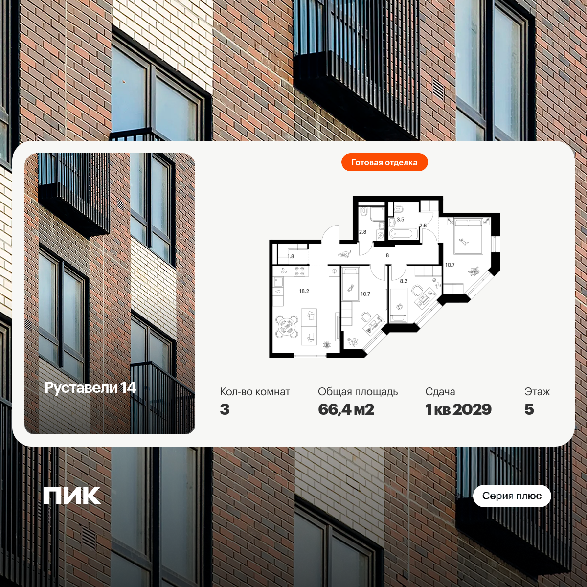 Купить 3к квартиру 69 м² в ЖК Бусиновский парк