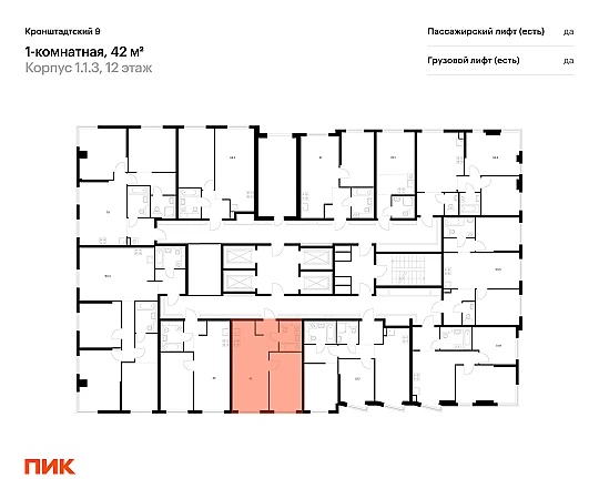Купить 1к квартиру 42 м² в ЖК Кронштадтский 9