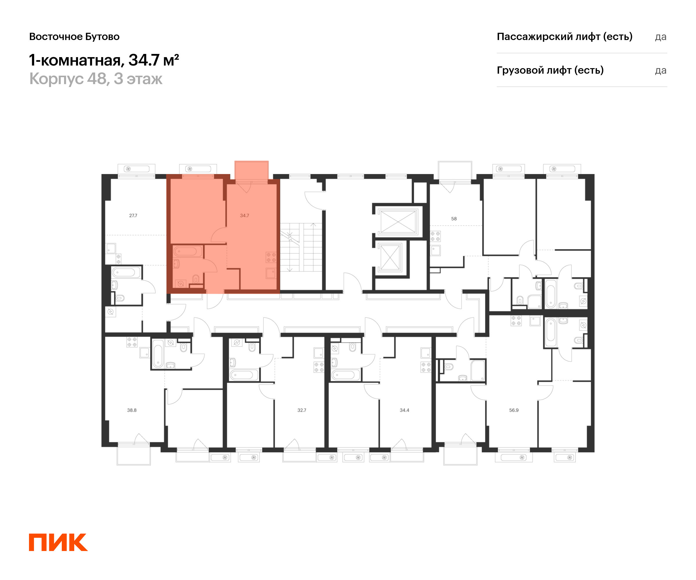 Продаётся 1-комн.квартира площадью 34.70 кв.м на 3 этаже 15 этажного дома (Корпус 48, секция 3) проекта ПИК Восточное Бутово. Светлый просторный подъезд на уровне земли, функциональная планировка, большие окна, с отделкой.