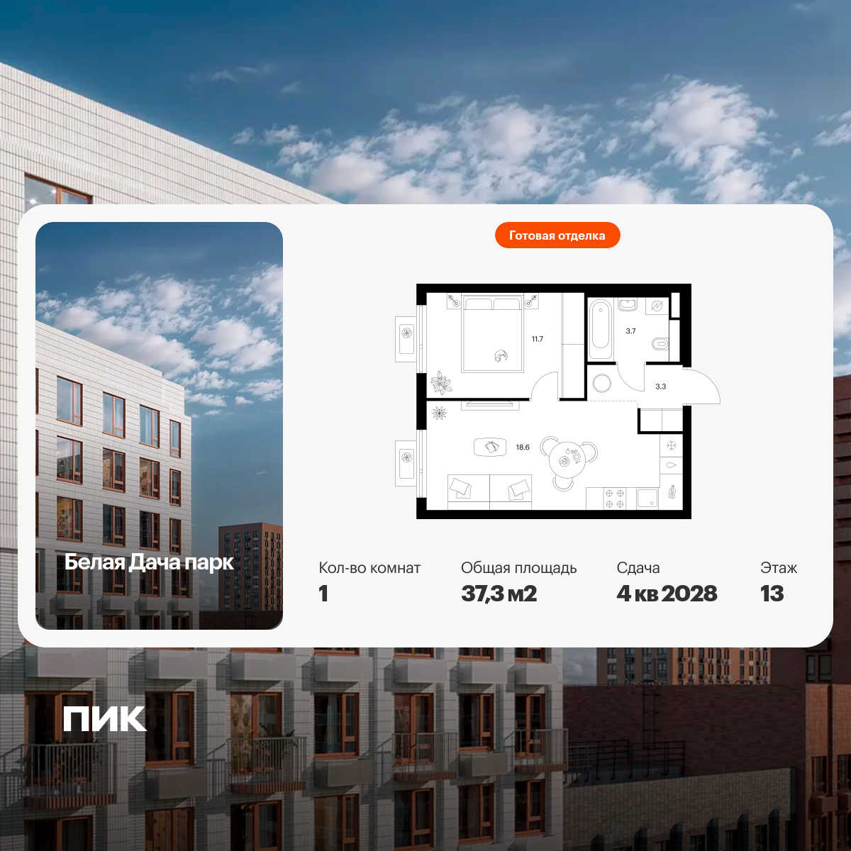 Купить 1к квартиру 36 м² в ЖК Ильинские луга