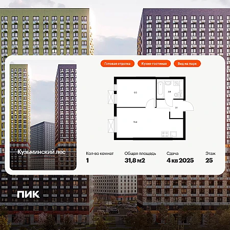 Продаётся 1-комн.квартира площадью 31.80 кв.м на 25 этаже 25 этажного дома (Корпус 9, секция 1) проекта ПИК Кузьминский лес. Светлый просторный подъезд на уровне земли, функциональная планировка, большие окна, с отделкой.