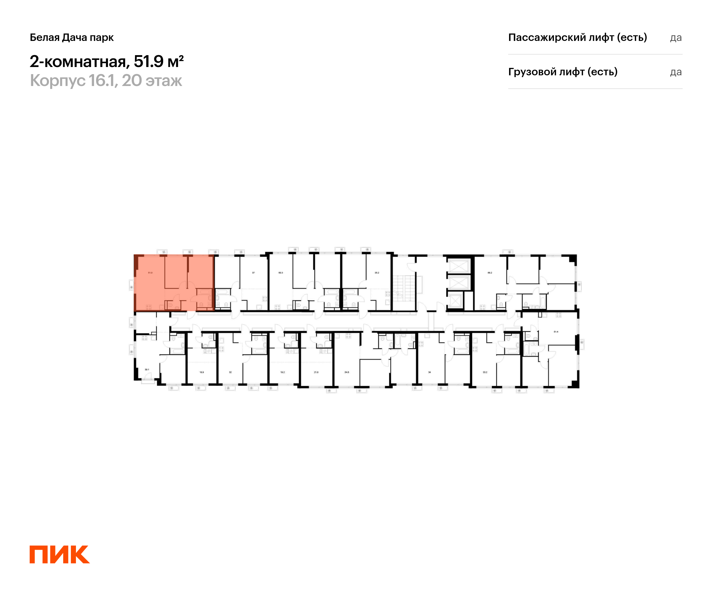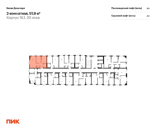 Продаётся 2-комн.квартира площадью 51.90 кв.м на 20 этаже 25 этажного дома (Корпус 16.1, секция 1) проекта ПИК Белая Дача парк. Светлый просторный подъезд на уровне земли, функциональная планировка, большие окна, с отделкой.