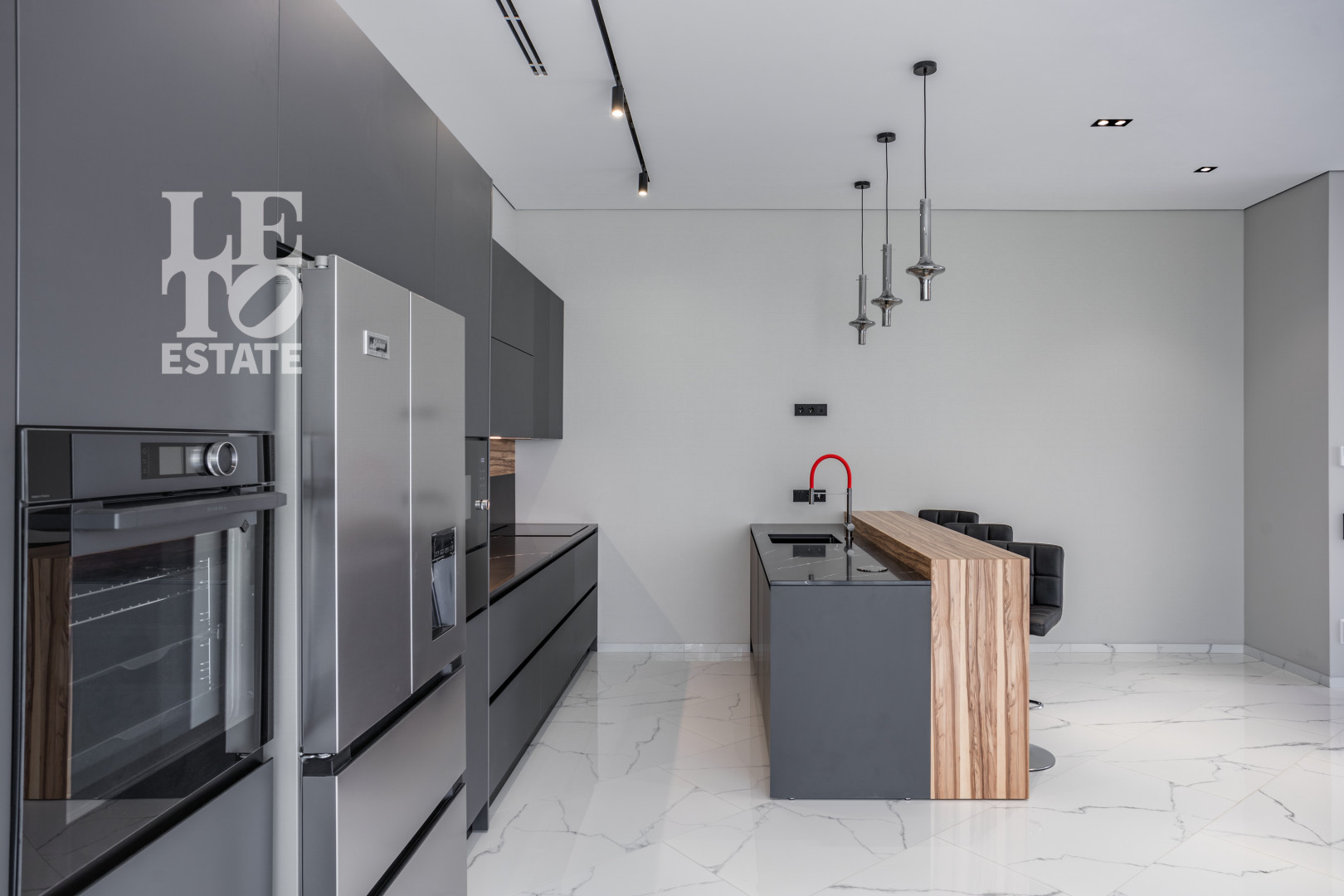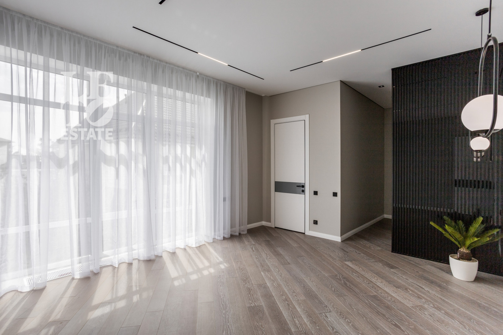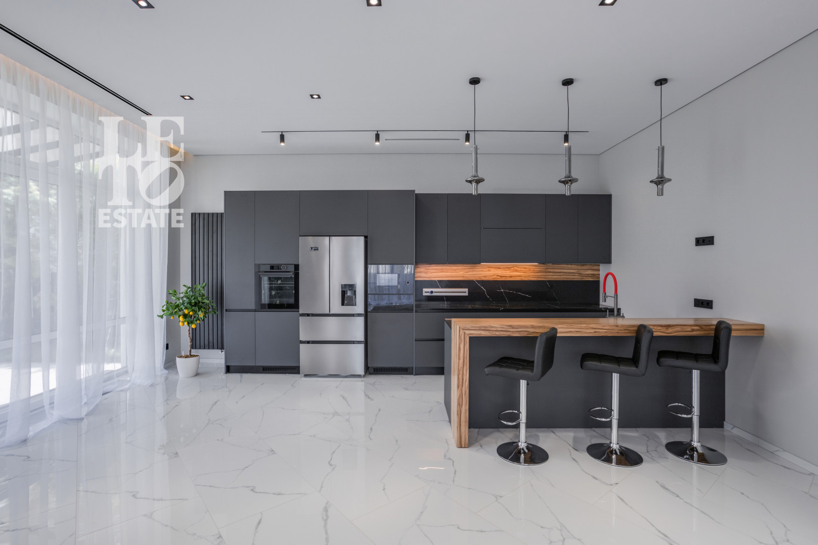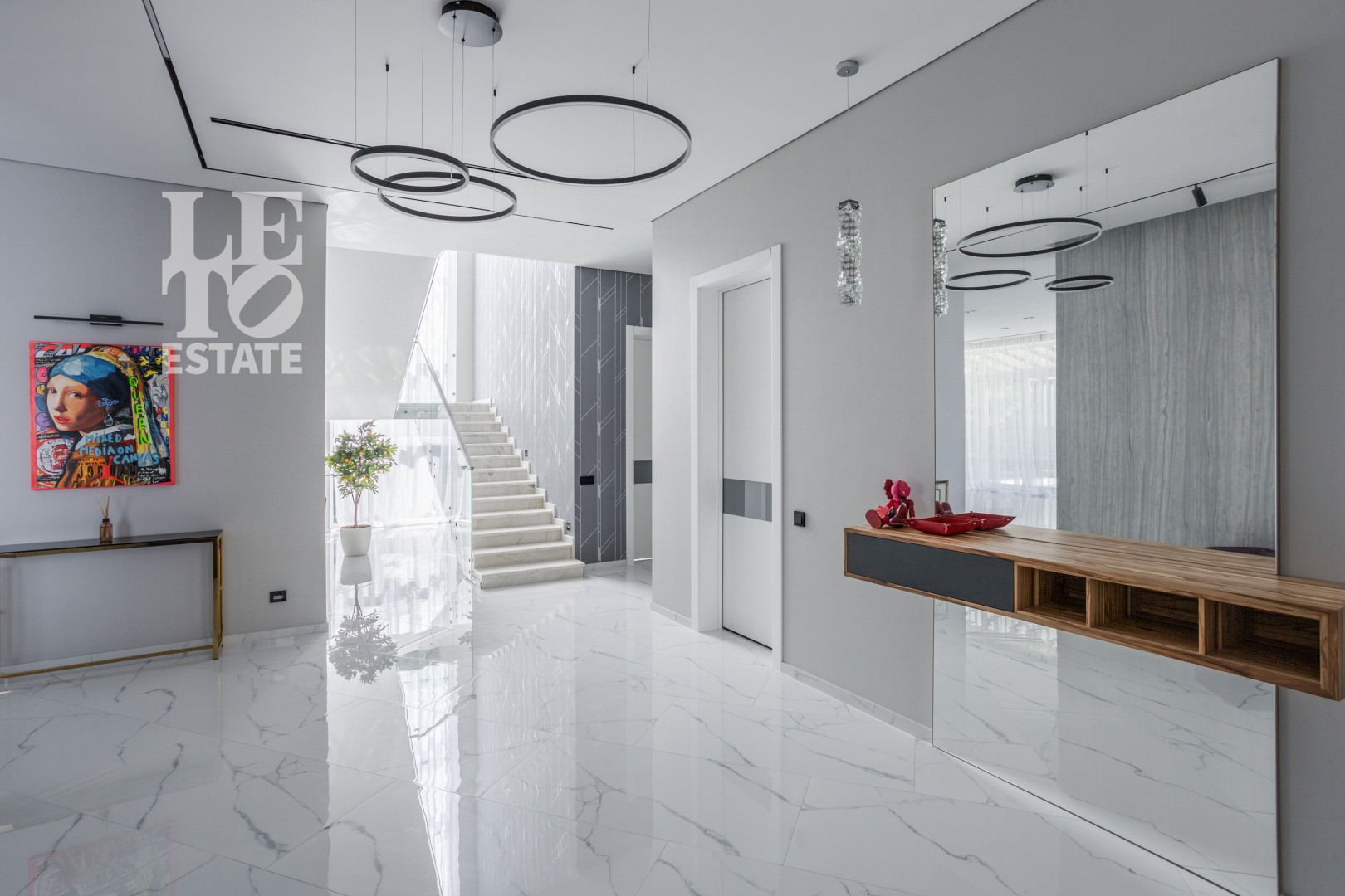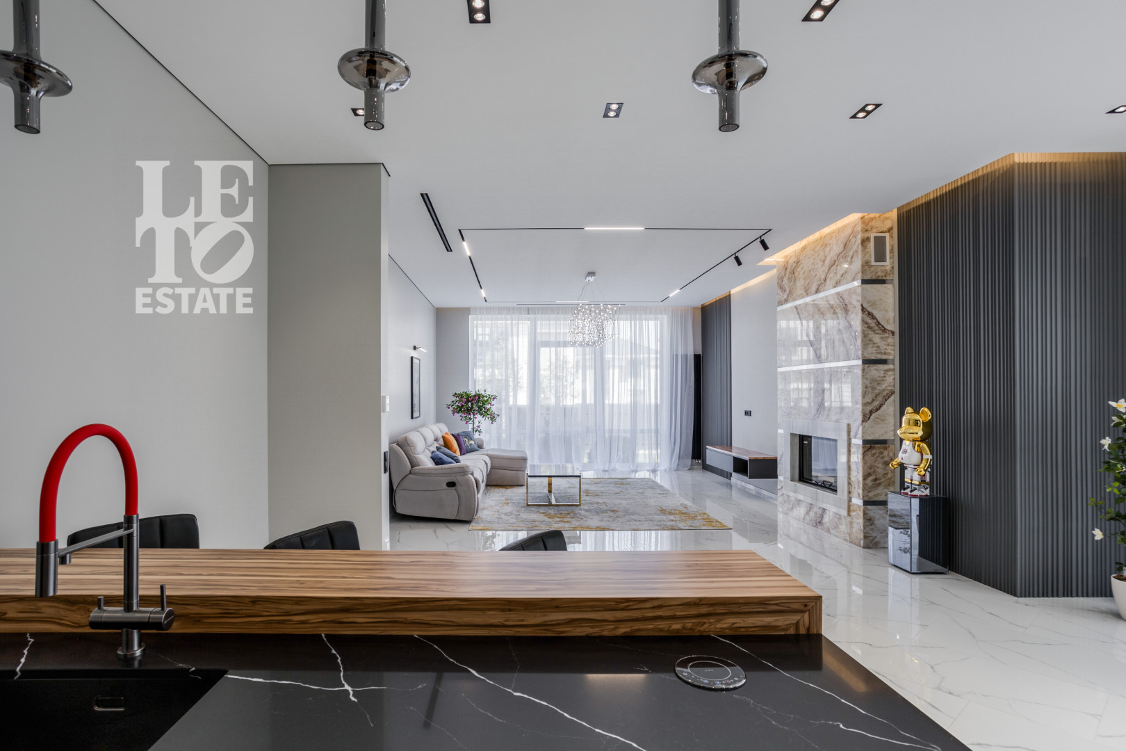 Дом выполнен в современной стилистике с элементами премиальной отделки. На участке площадью 13 соток гармонично размещены все функциональные зоны. Внутреннее пространство продумано до мелочей: использованы высококачественные материалы и современные технологии, создающие атмосферу комфорта и уюта.