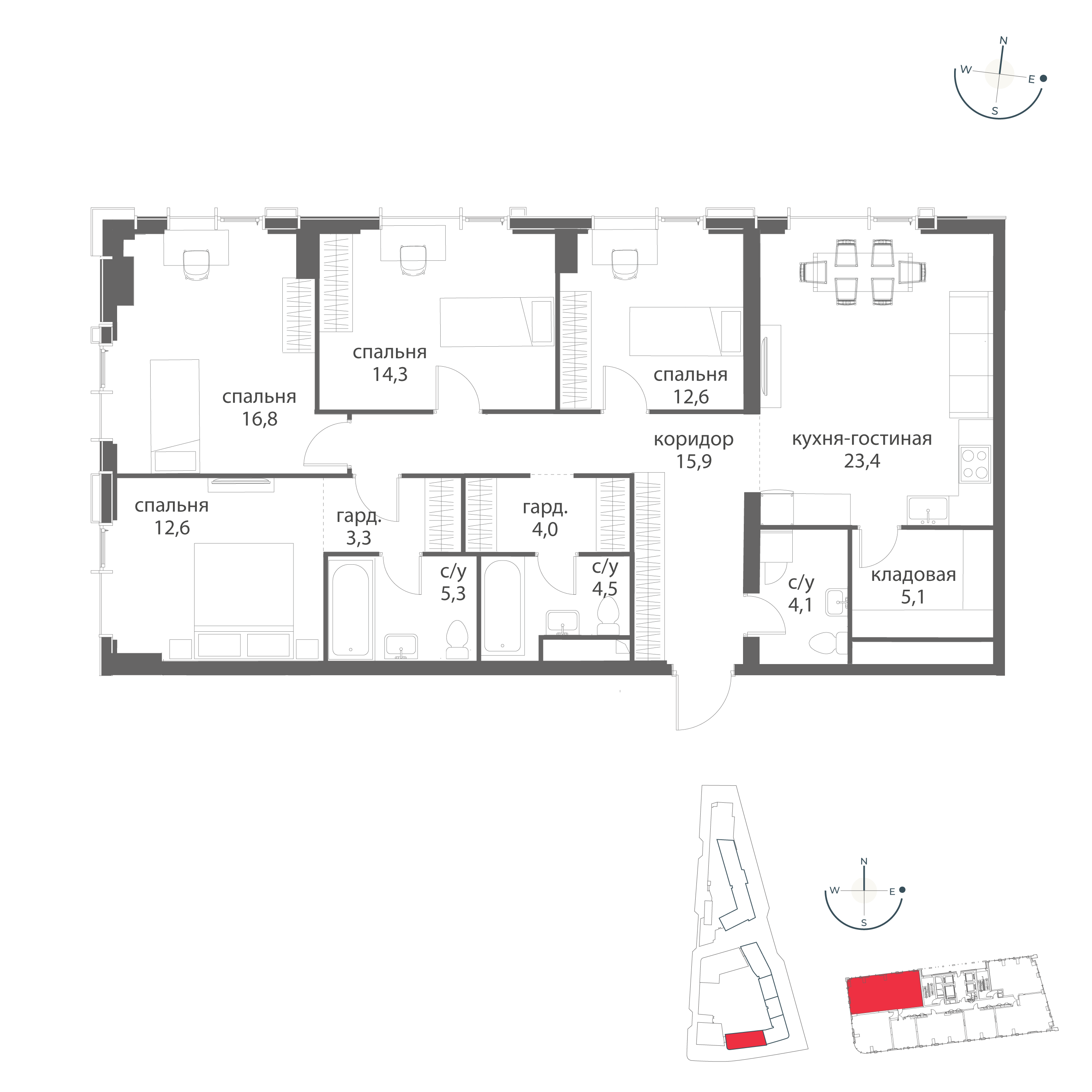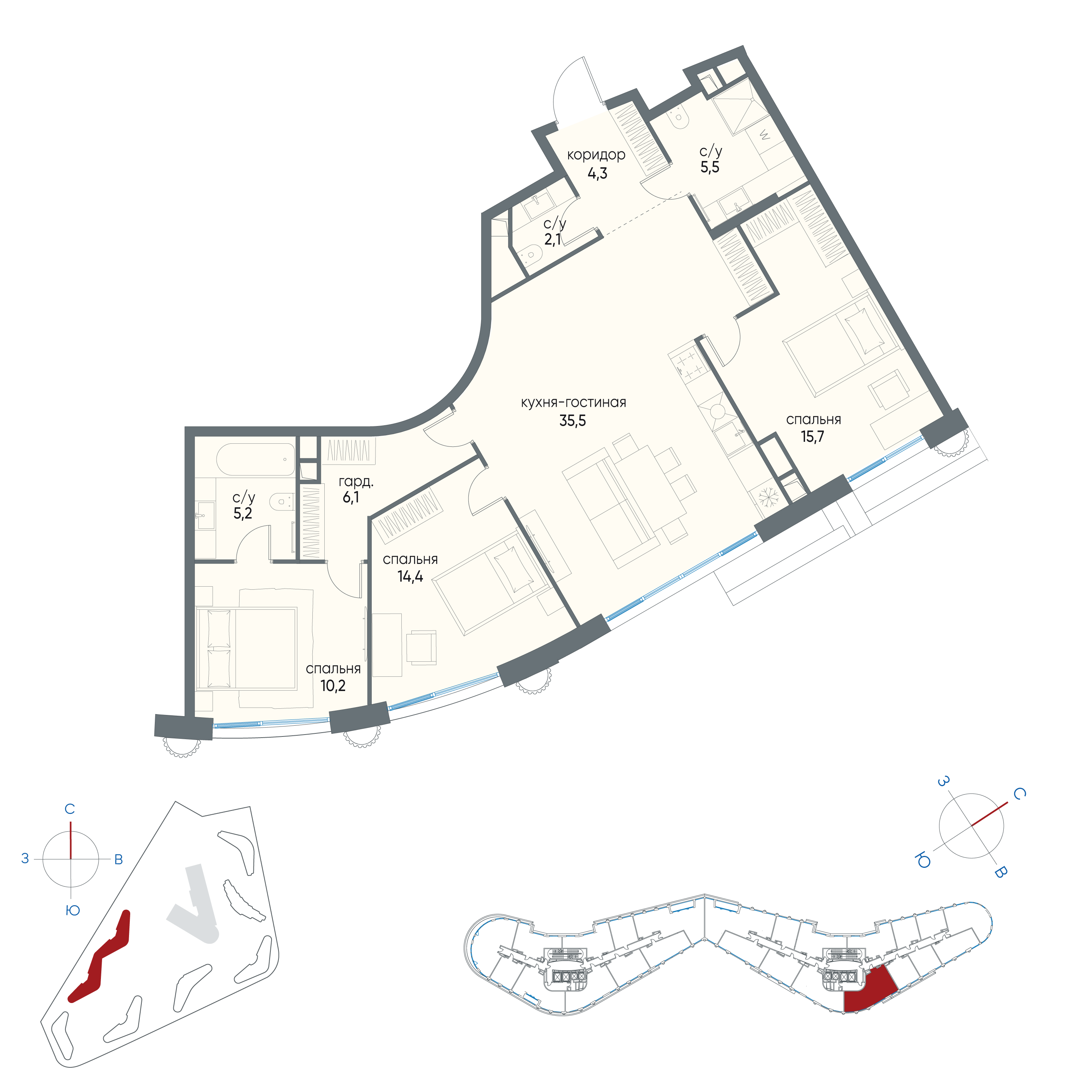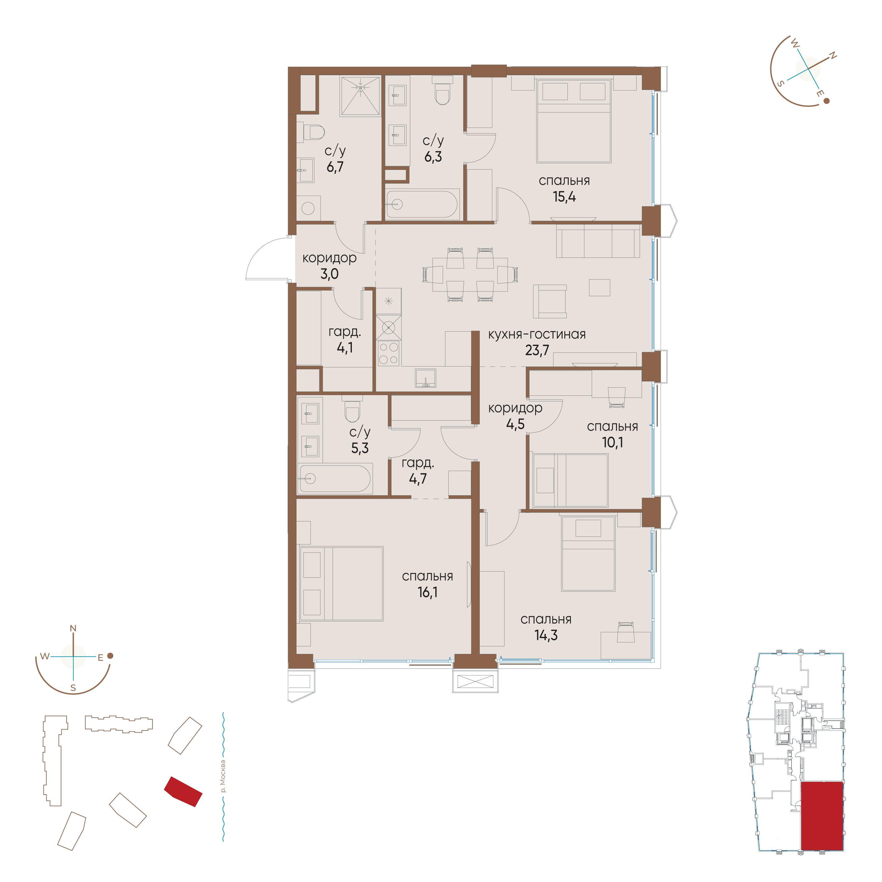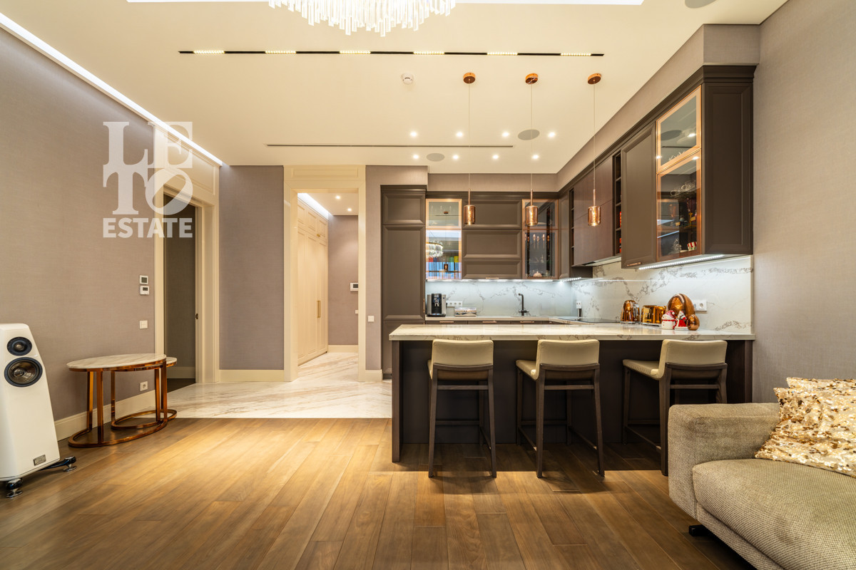 Квартира площадью 140,2 кв. м расположена на третьем этаже четырёхэтажного дома и полностью готова к комфортному проживанию. Стильный ремонт выполнен с применением премиальных материалов , квартира укомплектована всей необходимой мебелью и техникой ведущих мировых производителей , в квартире установлена система вентиляции и кондиционирования , а так же мультирум.