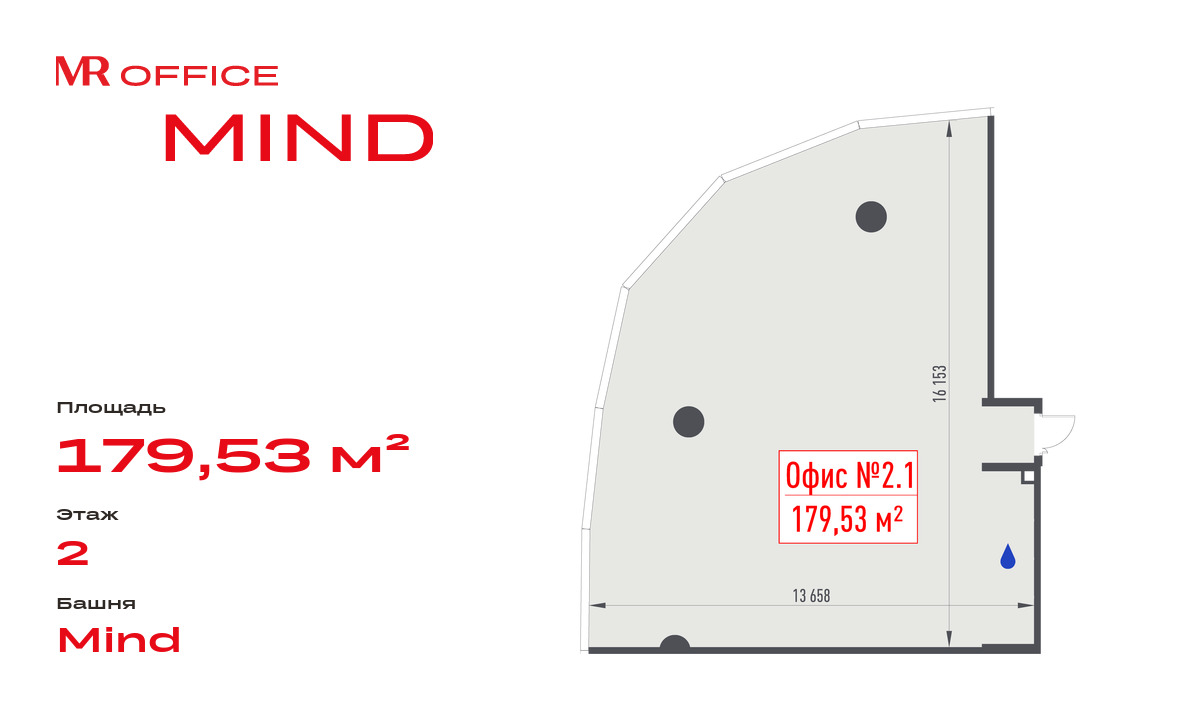 MIND — это 17-этажная офисное здание с современной архитектурой, панорамным остеклением и технологичной инженерией. Помещения предполагают возможность индивидуального зонирования пространства под задачи вашей команды.