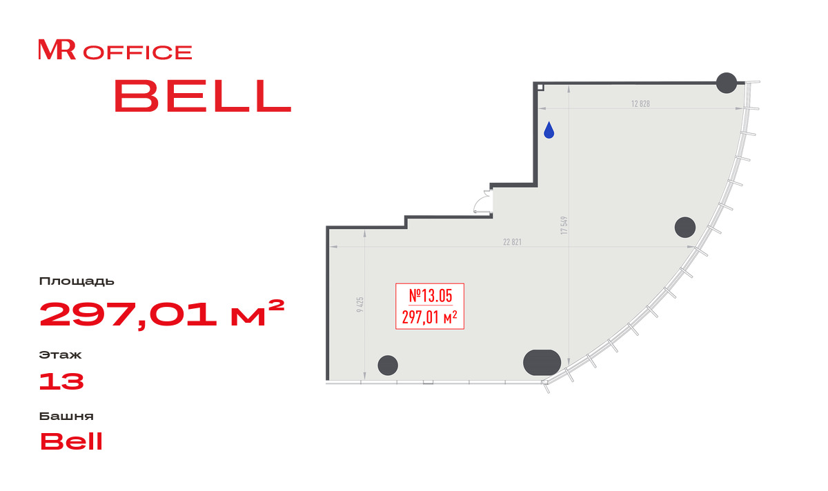 Продается офисное помещение 297.01 кв.м на 13 этаже в новом небоскребе класса Prime — БЦ BELL на Белорусской от бренда MR Office.