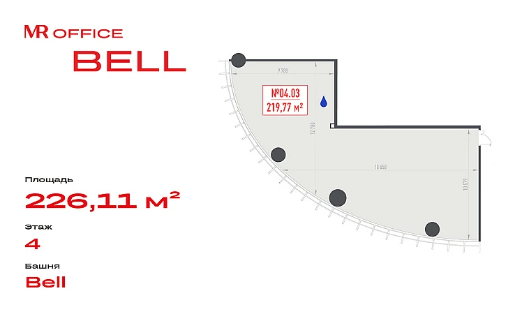 Продается офисное помещение 226.11 кв.м на 4 этаже в новом небоскребе класса Prime — БЦ BELL на Белорусской от бренда MR Office.