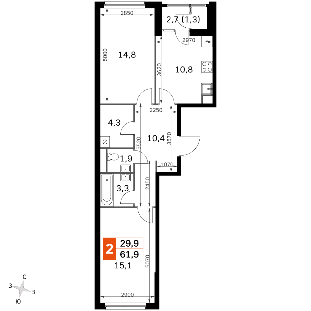 Купить 2к квартиру 61 м² в Sky Garden