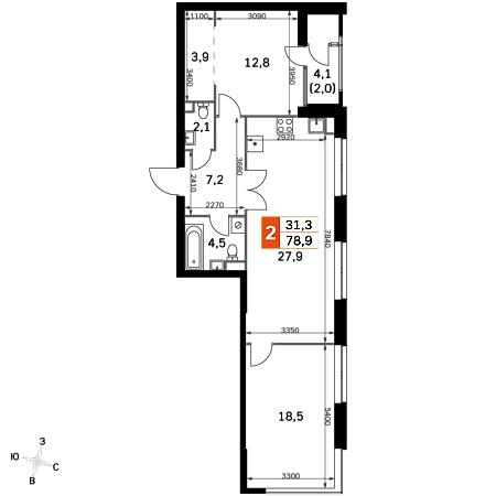 Продаётся 3-к квартира номер 837 общей площадью 78.9 кв.м. на 26-м этаже 43 этажного здания. Отделка Whitebox. Цена с учётом скидки.