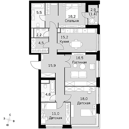 - Гибкая планировка - создайте пространство по своему вкусу.