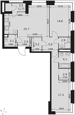 Купить 3к квартиру 83 м² в Sky Garden