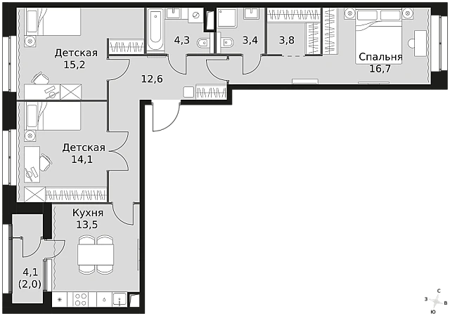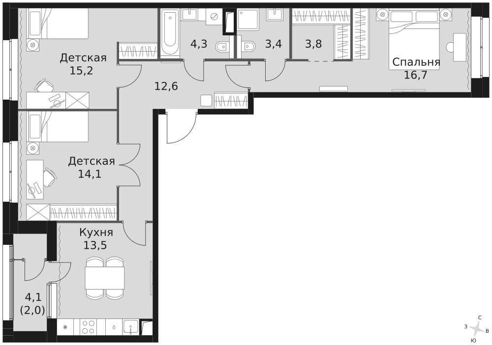 - Мастер-зона с санузлом и гардеробной. Всё для вашего комфорта и удобства, включая личный санузел и гардероб.