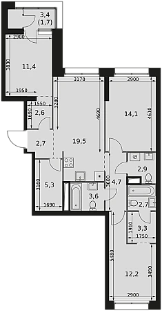 Продаётся 3-к квартира номер 680 общей площадью 86.7 кв.м. на 26-м этаже 44 этажного здания. Без отделки. Цена с учётом скидки.