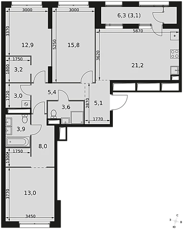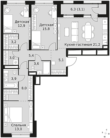 Купить 3к квартиру 98 м² в Sky Garden