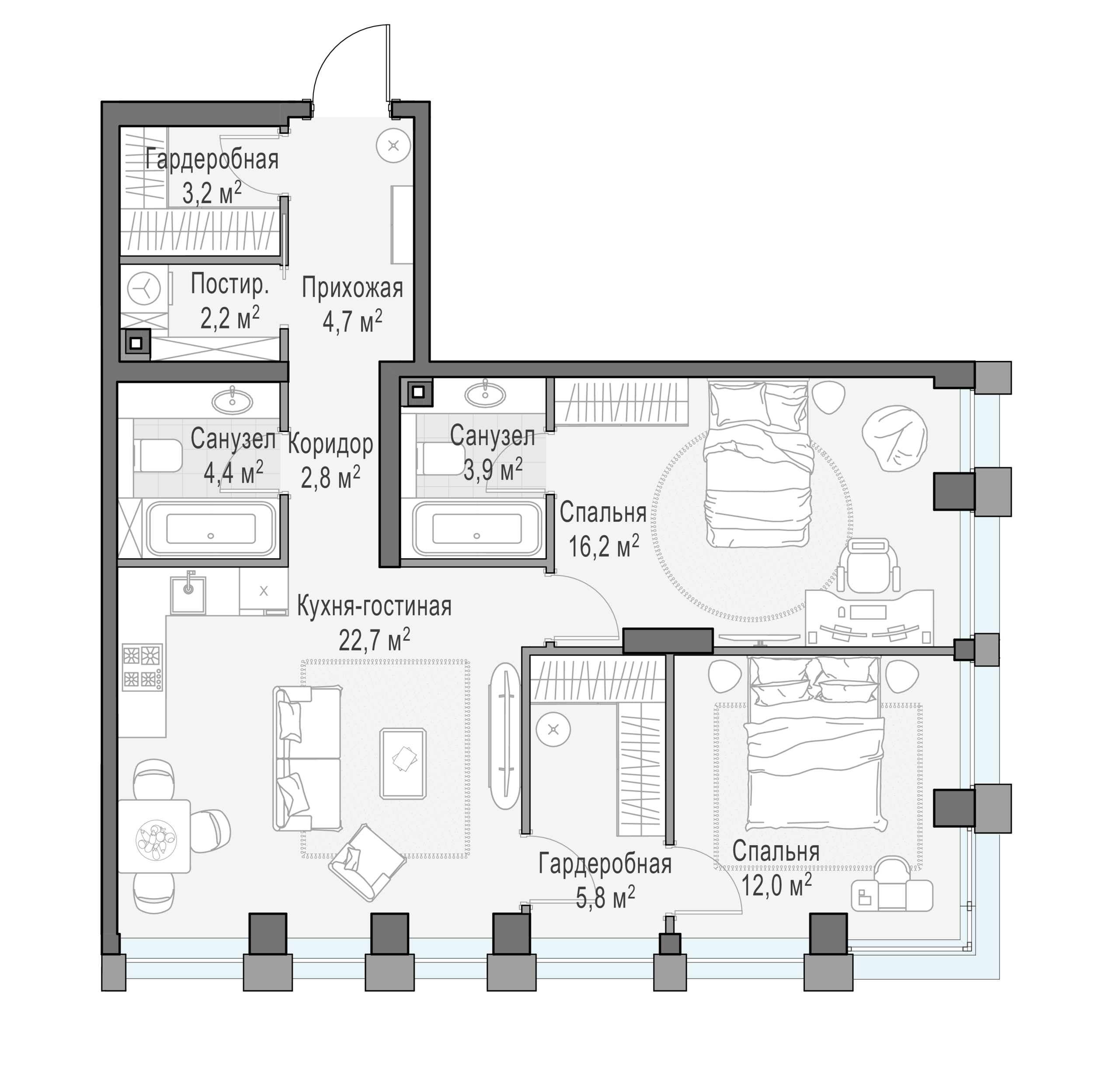 - Угловое остекление - свет и воздушность в каждой комнате.