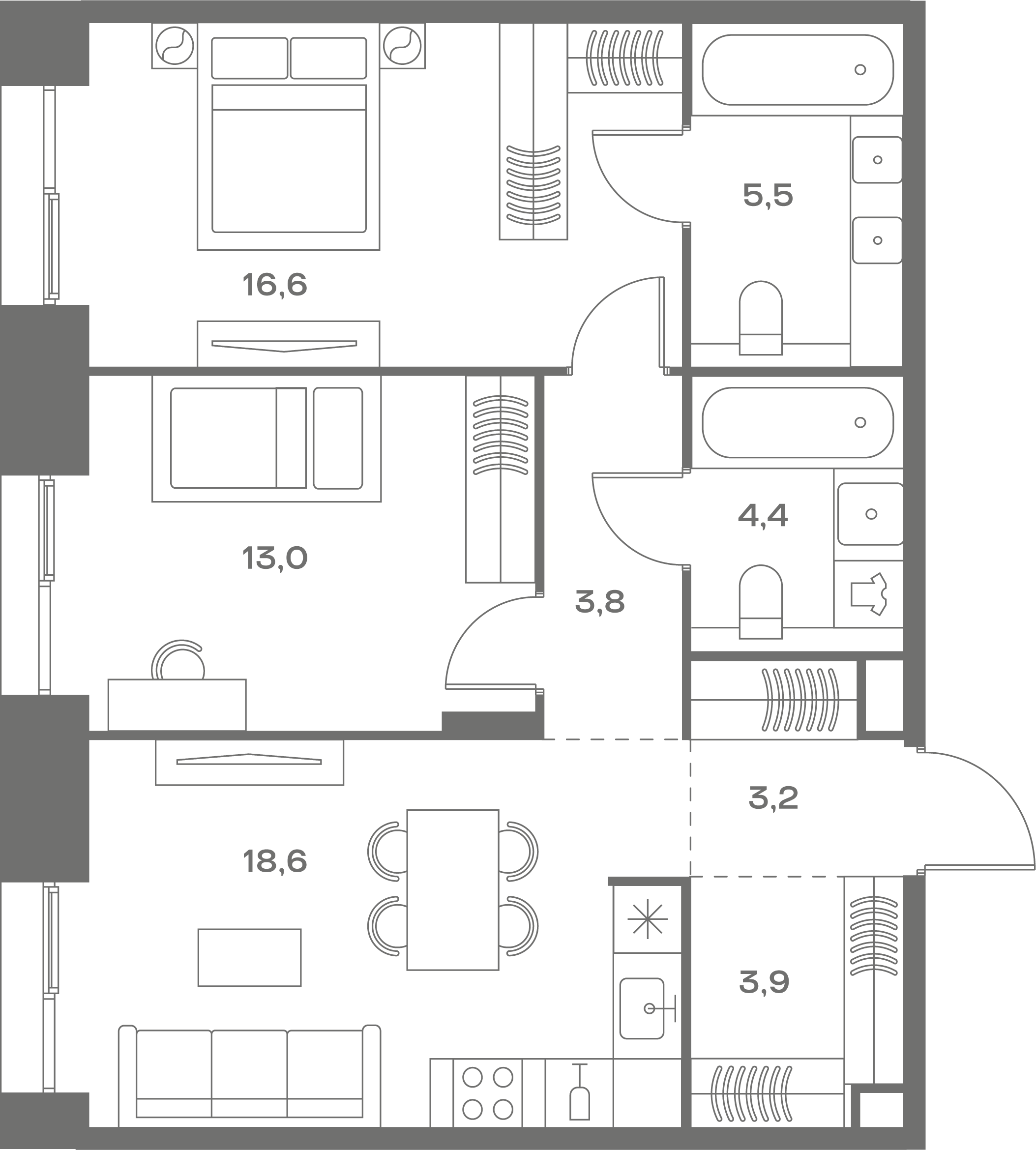 - Распашная планировка - отличное сочетание удобства и свободы.