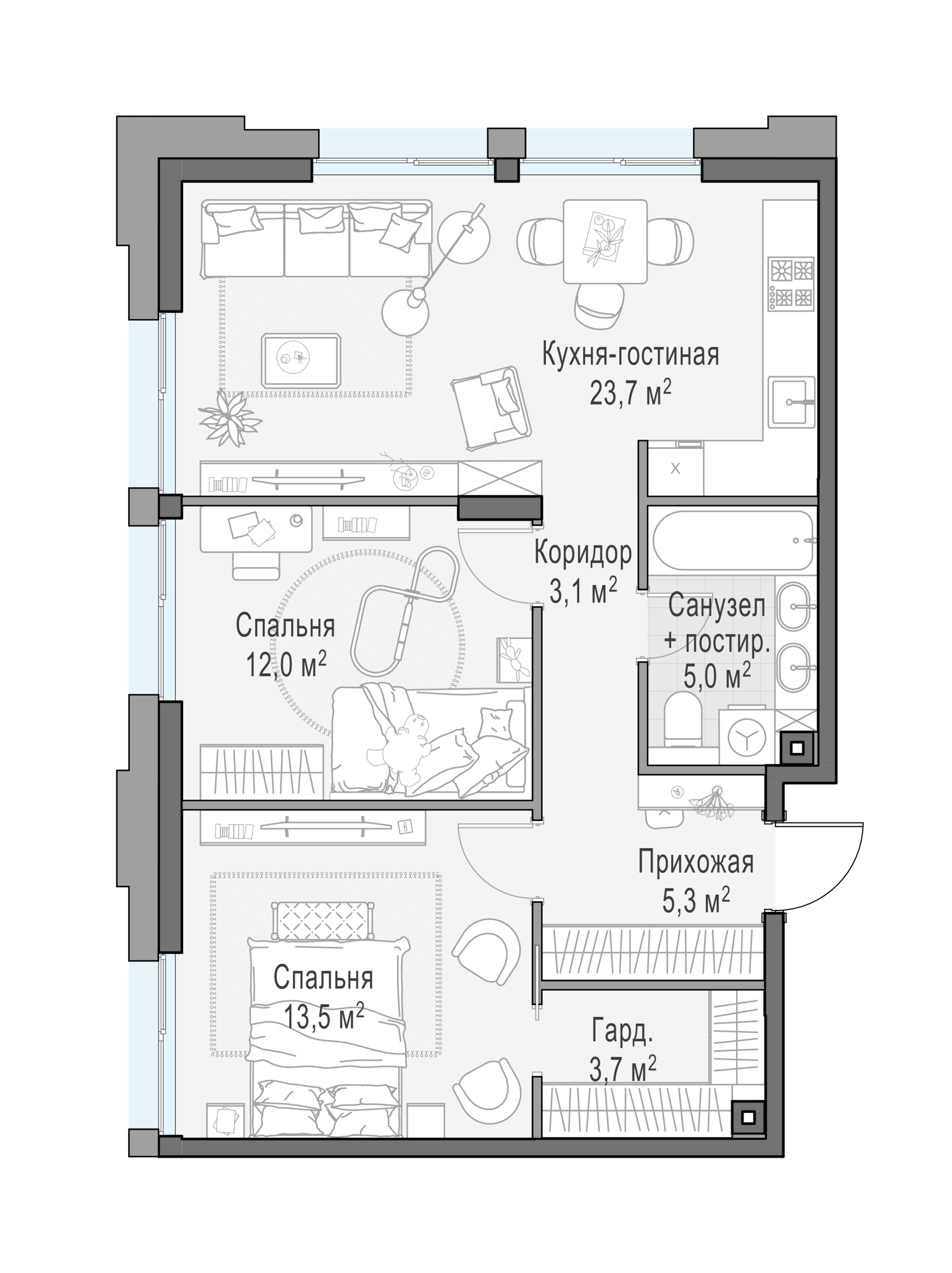 - Распашная планировка - отличное сочетание удобства и свободы.
