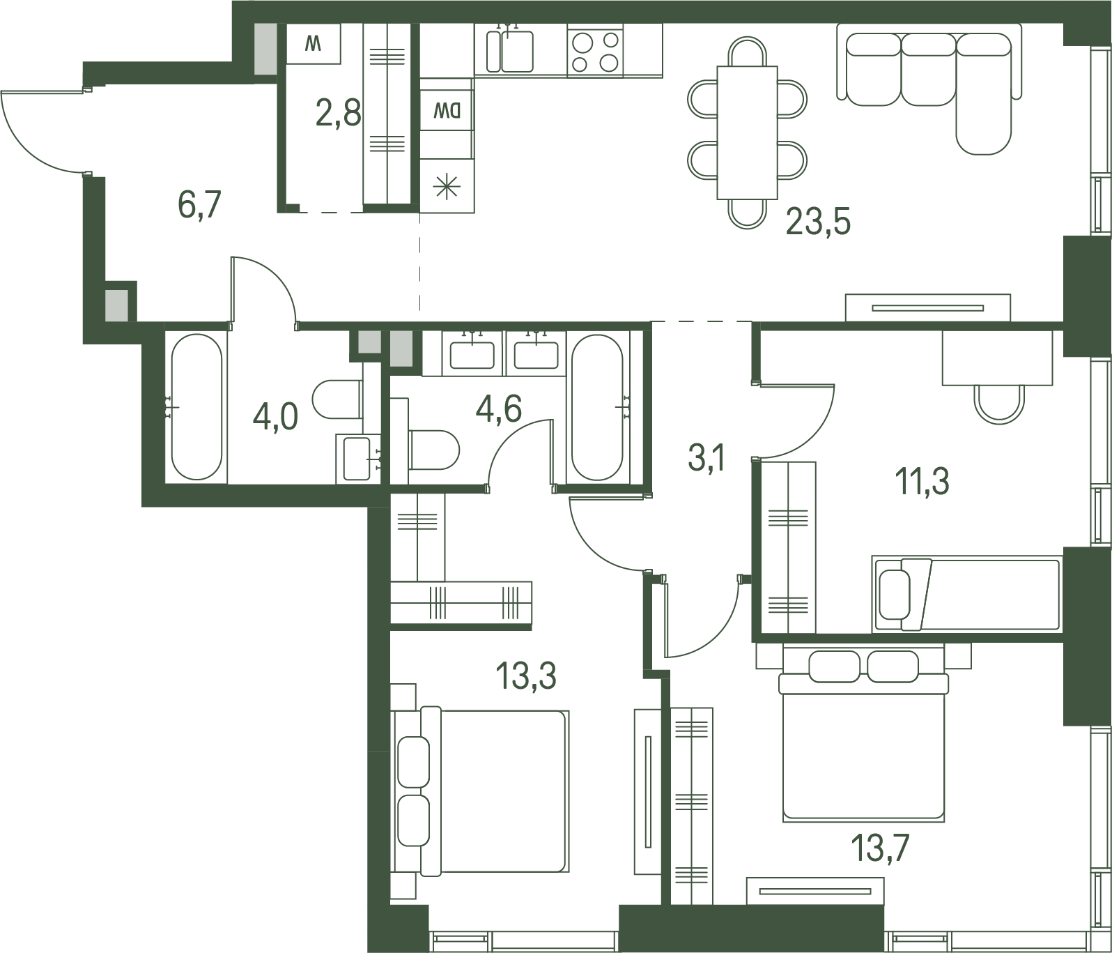 - Мастер-зона с санузлом. Уют и комфорт в одном пространстве.
