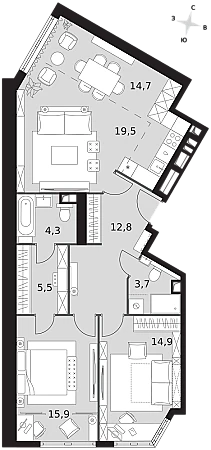 Продаётся 3-к квартира номер 354 общей площадью 91.3 кв.м. на 29-м этаже 46 этажного здания. Отделка Whitebox. Цена с учётом скидки.
