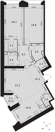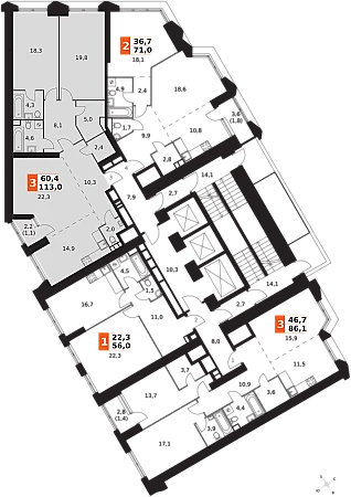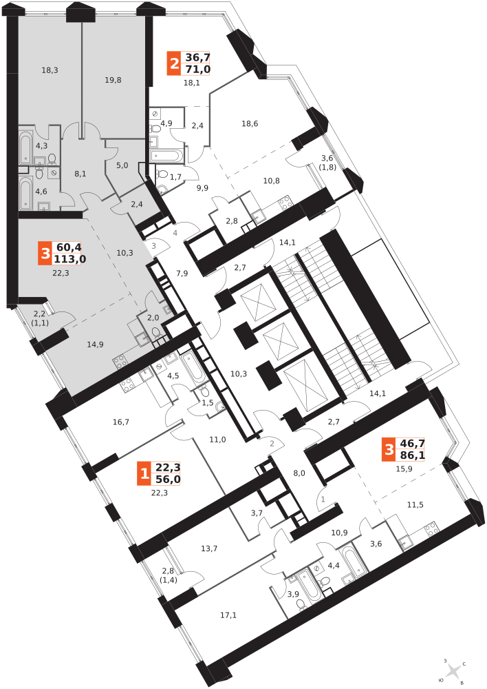 Продаётся 3-к квартира номер 1073 общей площадью 113 кв.м. на 5-м этаже 47 этажного здания. Отделка Whitebox. Цена с учётом скидки.