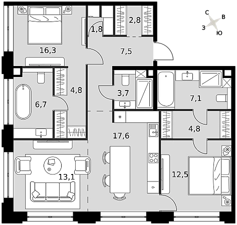 - Просторная гардеробная - место для вашего личного пространства.